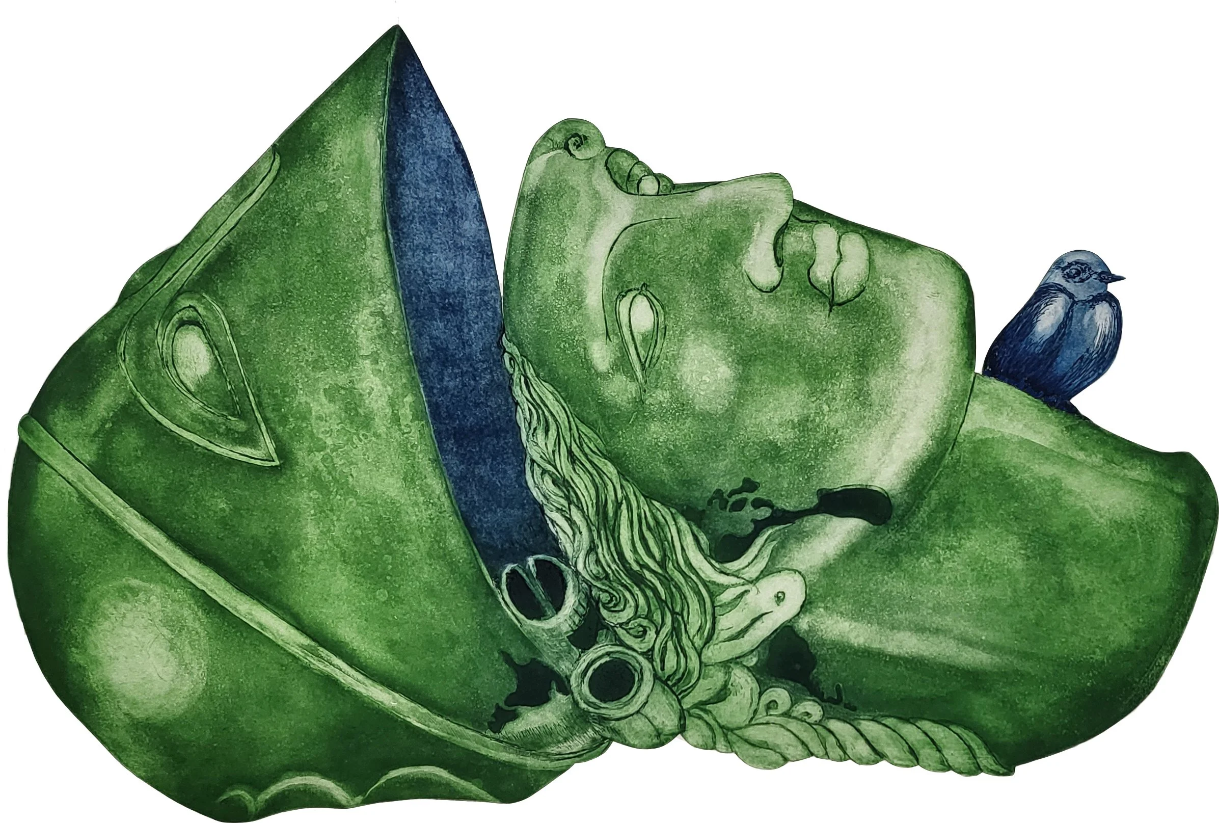 Athena and Bluebird, etching and aquatint on copper printed on Hahnemühle 300gsm. first state shaped plate variable dimensions c 50 x 77cm.